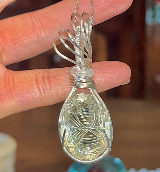 Intaglio Lemon Quartz Necklace – Sterling Silver with Faceted Moonstones